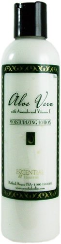 ESCENTIAL ALOE VERA MOISTURIZING LOTION with avocado oil & vitamin E contains the natural soothing juice of the Aloe plant, rich avocado oil, sweet almond oil, and anti-oxidant vitamin E to provide skin therapy for chapped or dry skin. Enjoy this silky, super-emollient lotion. Ideal companion product to Escential Foaming Bath Gel, or Escential Bubble Bath with the same custom scent.